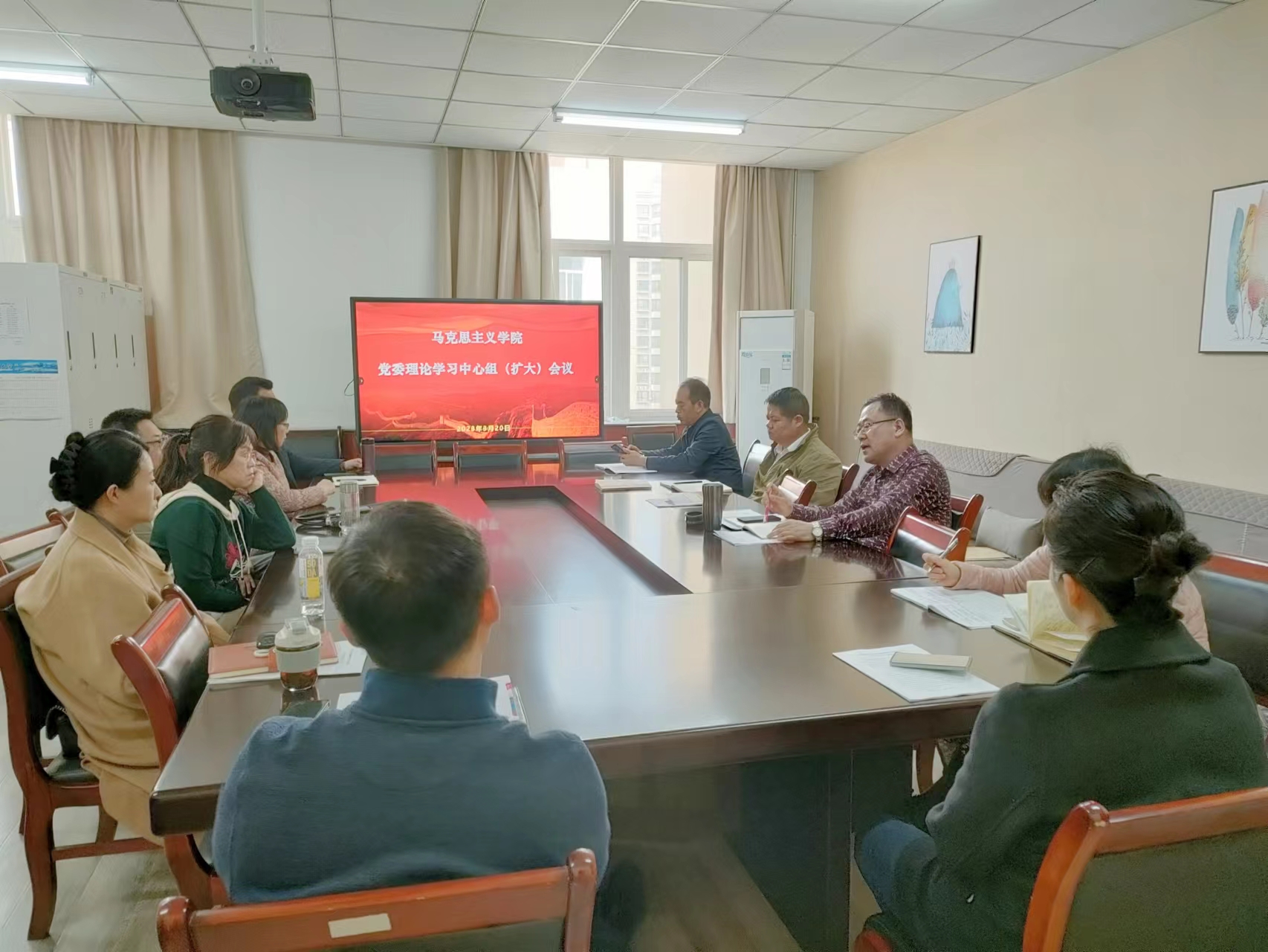 321日下午,足球直播88 党委理论学习中心组(扩大)学习会在长安校区诚意楼五层会议室举行,足球直播88 班子成员、党委委员、党支部书记、教研室主任和导师组长参加集体学习,足球直播88 党委书记刘驰主持会议。