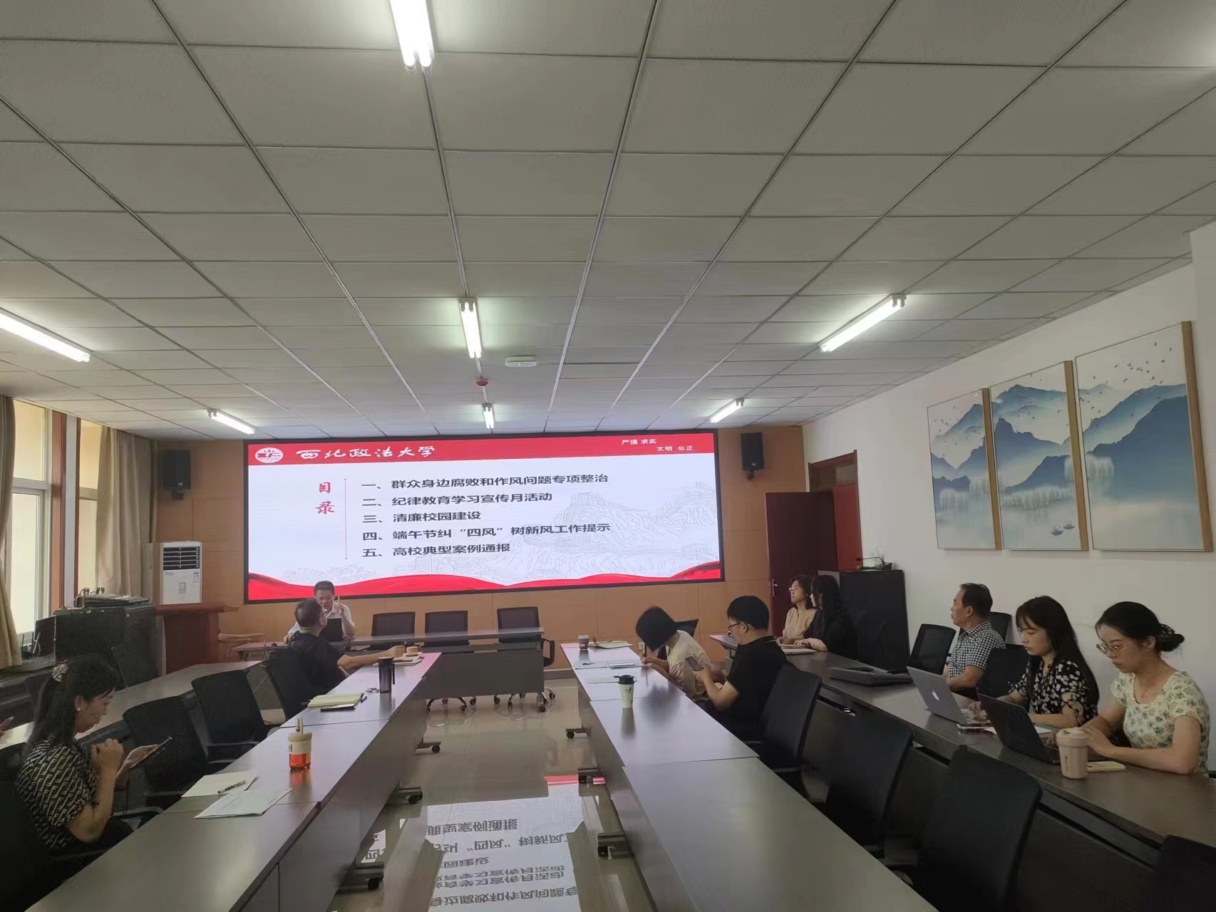 所有参会人员结合秦风网发布的《党员干部纪律教育学习读本》等资料和党的十九大以来高校作风问题典型案例,开展了学纪守纪心得体会交流活动。并共同观看了警示教育视频。