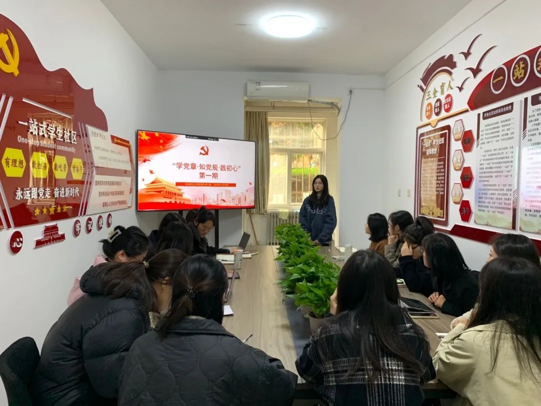 学生党支部于11号公寓“一站式”学生社区开展“学党章·知党规·践初心”学习党章活动,学生党支部书记徐鹏、学生党支部副书记邢徐迎、部分党员与积极分子参加此次活动。本次活动由任晓琴同志主持。