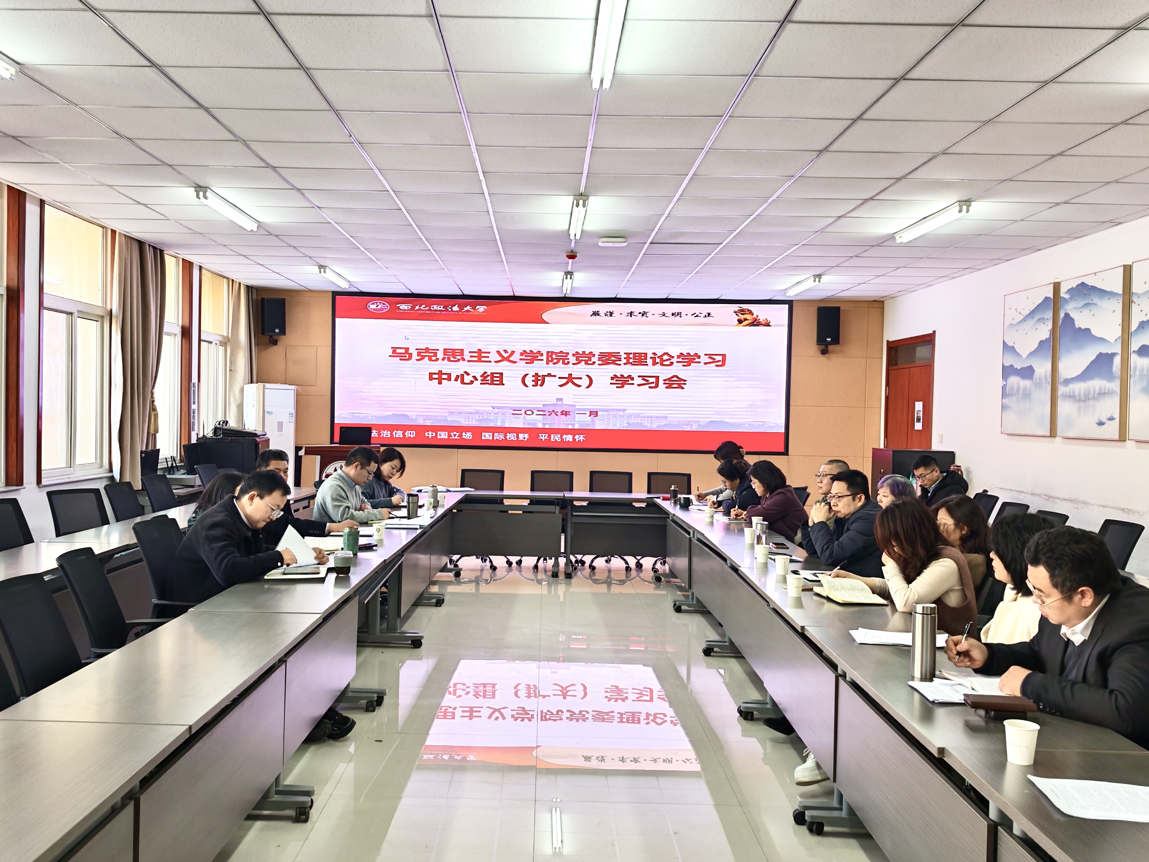 将严格落实“第一议题”制度,制定党委及党支部年度学习计划,把廉洁教育、法治教育融入课程思政与师德师风建设,通过专题研讨、案例教学等形式,推动理论学习转化为思政教育提质增效的实际成效,为学校"十五五"时期发展贡献马院力量。
