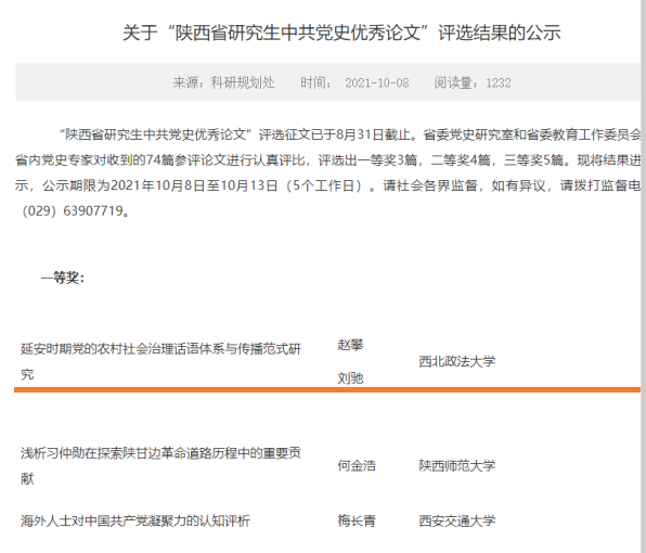 1、“陕西省研究生中共党史优秀论文”