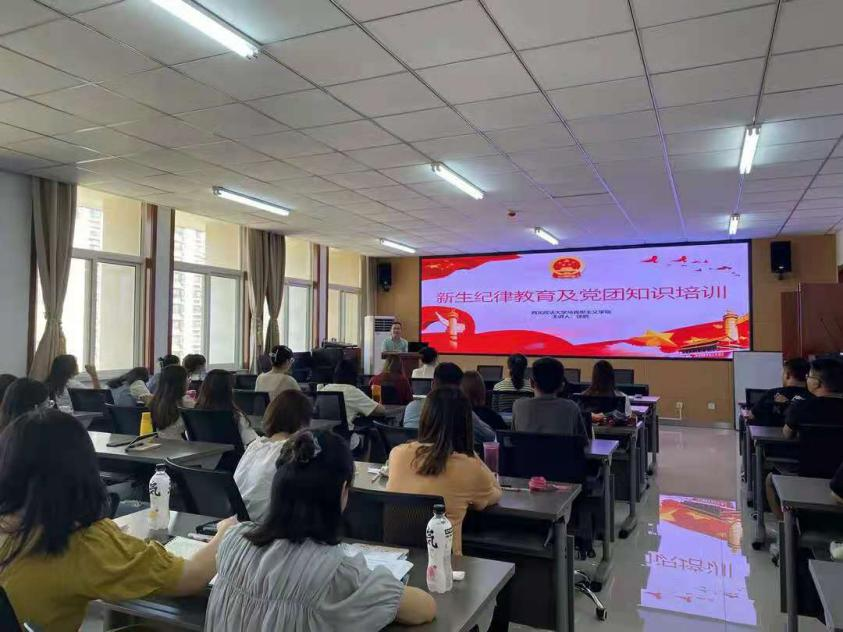 为了进一步增强新生的纪律意识,为学生创造一个更好的学习、生活环境。9月10日下午16时,足球直播88 于长安校区足球直播88 会议室开展新生纪律教育主题班会。学生党支部书记徐鹏、团总支书记高佳敏以及全体在校生参加会议。徐鹏老师对新生进行纪律教育与党团知识培训,介绍党员发展情况及要求,告诫同学们要遵守校纪校规,并对后续相关工作开展做出安排。