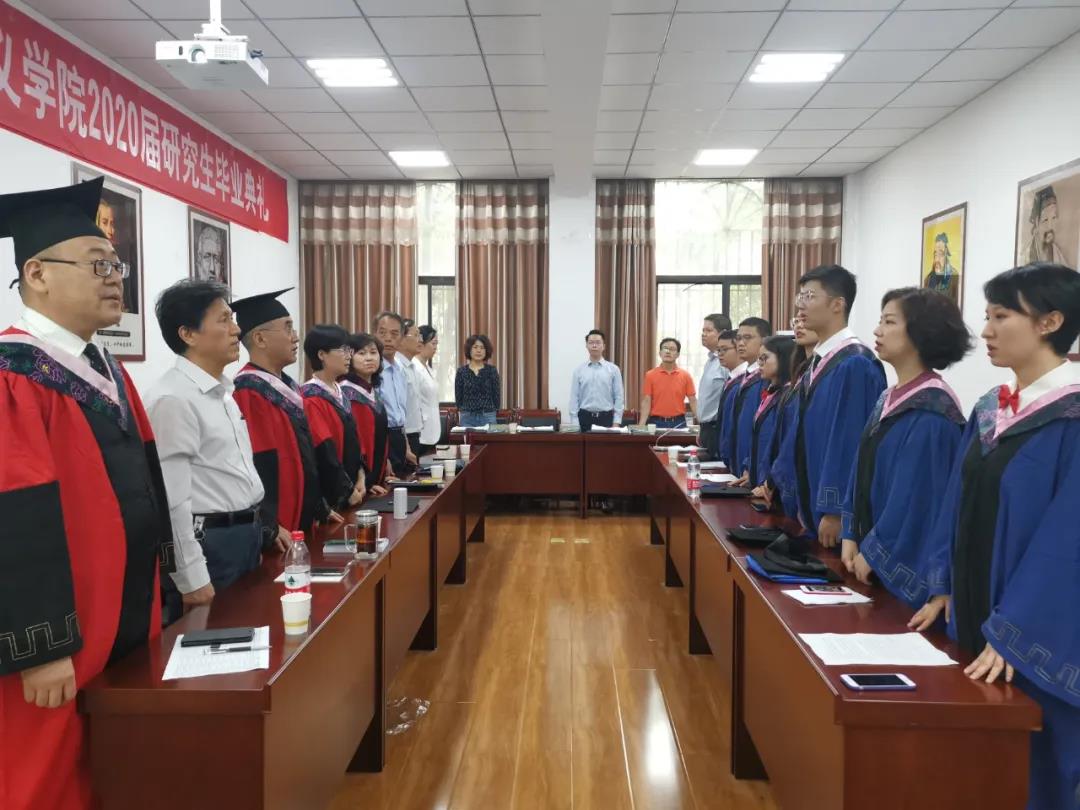2020年7月12日上午10时,学校硕士毕业典礼甫一结束,足球直播88 在雁塔校区文化与哲学价值研究院举行2020届研究生毕业典礼。出席本次会议的有足球直播88 院长魏奇,党总支书记石建峰,党总支副书记兼副院长刘驰,副院长鲁洋,马克思主义中国化专业导师组组长刘进田,马克思主义发展史专业导师组组长李云,思想政治教育方向导师组副组长王有信,硕士生导师陈春会教授、李贵副教授,教务秘书宋伟、党总支秘书徐鹏、团总支书记高佳敏及全体2020届毕业生(部分在线上),毕业典礼由刘驰主持。受疫情影响,本次毕业典礼采取线上线下相结合的方式举行。