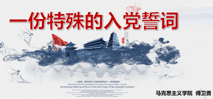 第二位宣讲人傅卫勇同学以“一份特殊的入党誓词”为主题,讲述了一位农民党员—贺页朵入党的感人故事,并以使命与担当为主线,从革命理想高于天、入党初心不能忘、人民利益放第一、崇德修身记心上、知行合一树形象等方面向同学们提出建议,希望大家从党史的学习中汲取精神力量、勇担时代重任,激励每位党员都要牢记入党誓词,坚定入党初心,不忘党员使命。