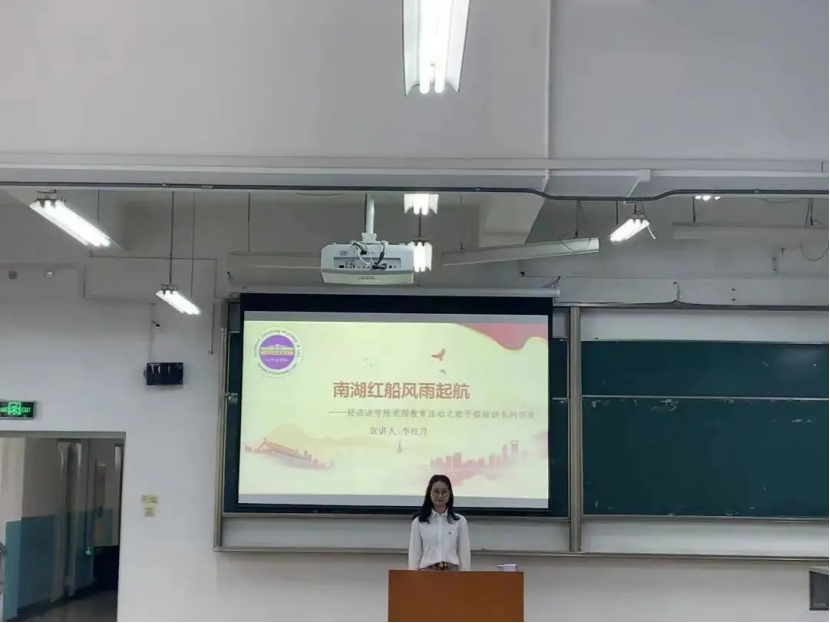 第一位宣讲人李红月同学以“南湖红船,风雨起航”为主题,讲述了中共一大召开的历史史实和“红船精神”的内涵两大部分内容。第一部分围绕一大召开背景、组建共产党的必要性和重要性及党成立的艰辛历程等问题为经济法足球直播88