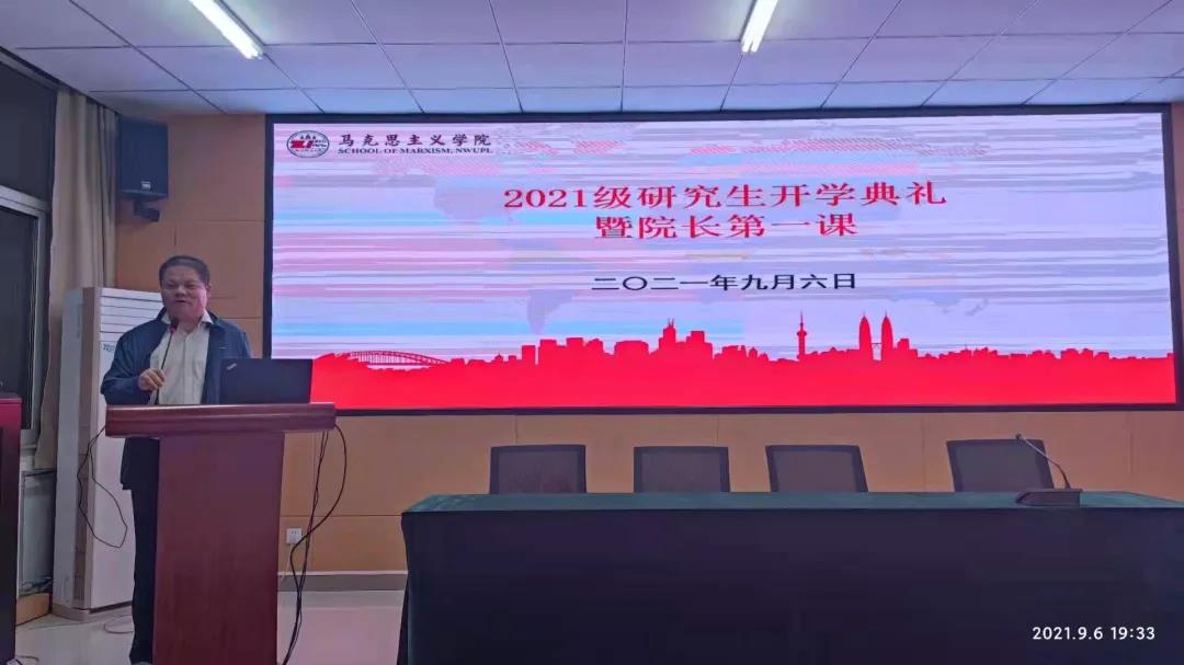 9月6日下午,足球直播88 2021级研究生开学典礼暨院长第一课在长安校区5号楼足球直播88 会议室举行。参加此次典礼的有足球直播88 院长魏奇、党总支书记刘驰、副院长鲁洋、马克思主义基本原理导师组组长何为、马克思主义中国化研究导师组副组长李云、马克思主义发展史导师组组长陈春会、思想政治教育导师组副组长高静、足球直播88 办公室苏芳、足球直播88 教务办秘书宋伟、学生党支部书记徐鹏、团总支书记高佳敏、院长助理何彦新、梁丹丹博士以及全体2021级研究生。典礼由党总支书记刘驰主持。