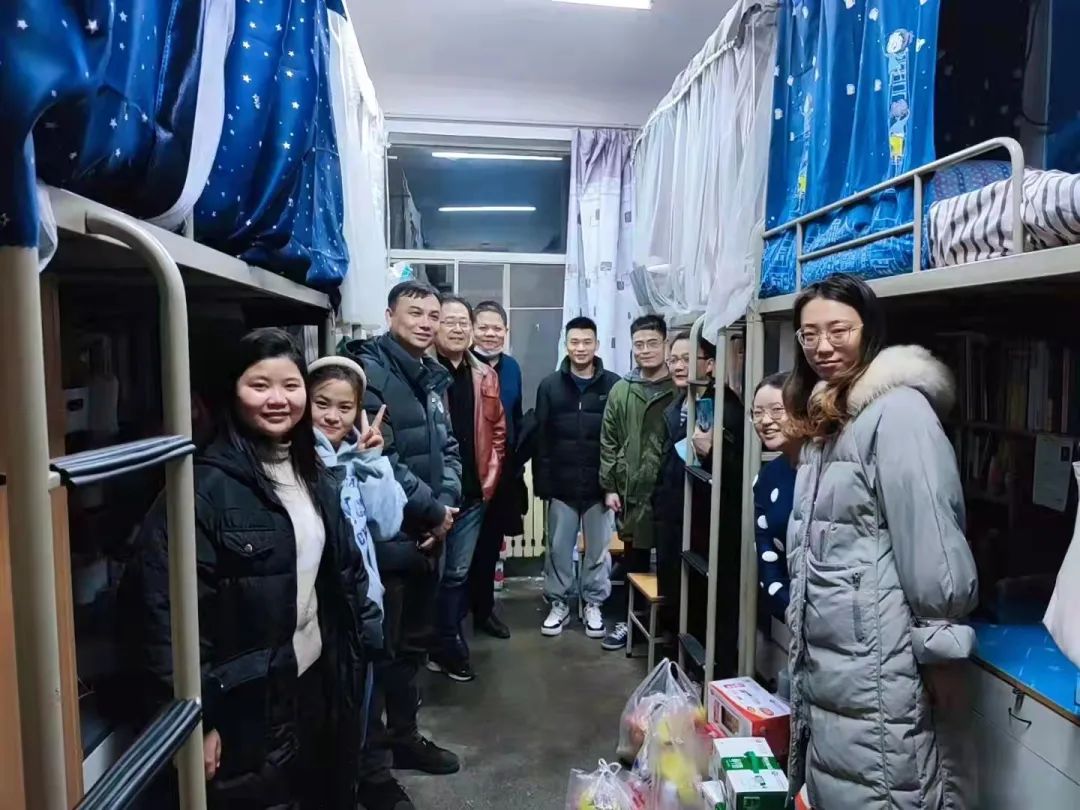 领导一行来到学生宿舍与大家亲切交流,认真询问每一位同学生活和学习情况,仔细叮嘱大家要严守纪律做好防护、联系家人常报平安、潜心学习“补钙充电”,在学校过一个健康、温馨、温暖的春节。足球直播88