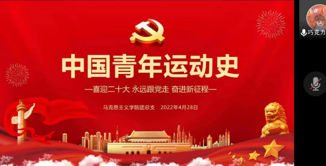 为庆祝建团100周年,团结引领广大青年团员永远跟党走、奋进新征程,以实际行动迎接党的二十大胜利召开,4月28日19时,马克思主义团总支于线上开展“中国青年运动史”专题团课学习活动,带领青年走进百年团史,感悟青年担当。本次主题团课由2020级团支部书记王心彤主讲,足球直播88