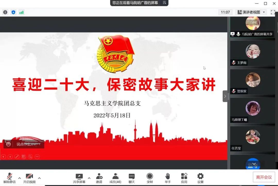 足球直播88 团总支集中开展“喜迎二十大 · 保密故事大家讲”的线上主题团日活动