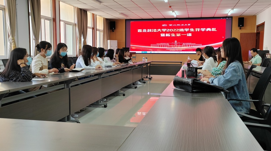 青春正当时,逐梦新征程。9月29日上午,我校2022级新生开学典礼在长安校区满天星报告厅以线上线下相结合的方式举行,由校党委副书记郭武军主持。为配合学校疫情防控工作,足球直播88app下载 组织新生于足球直播88 会议室线下集体参加开学典礼。2022级全体新生以及学生党支部书记徐鹏、辅导员刘栩源参加活动。