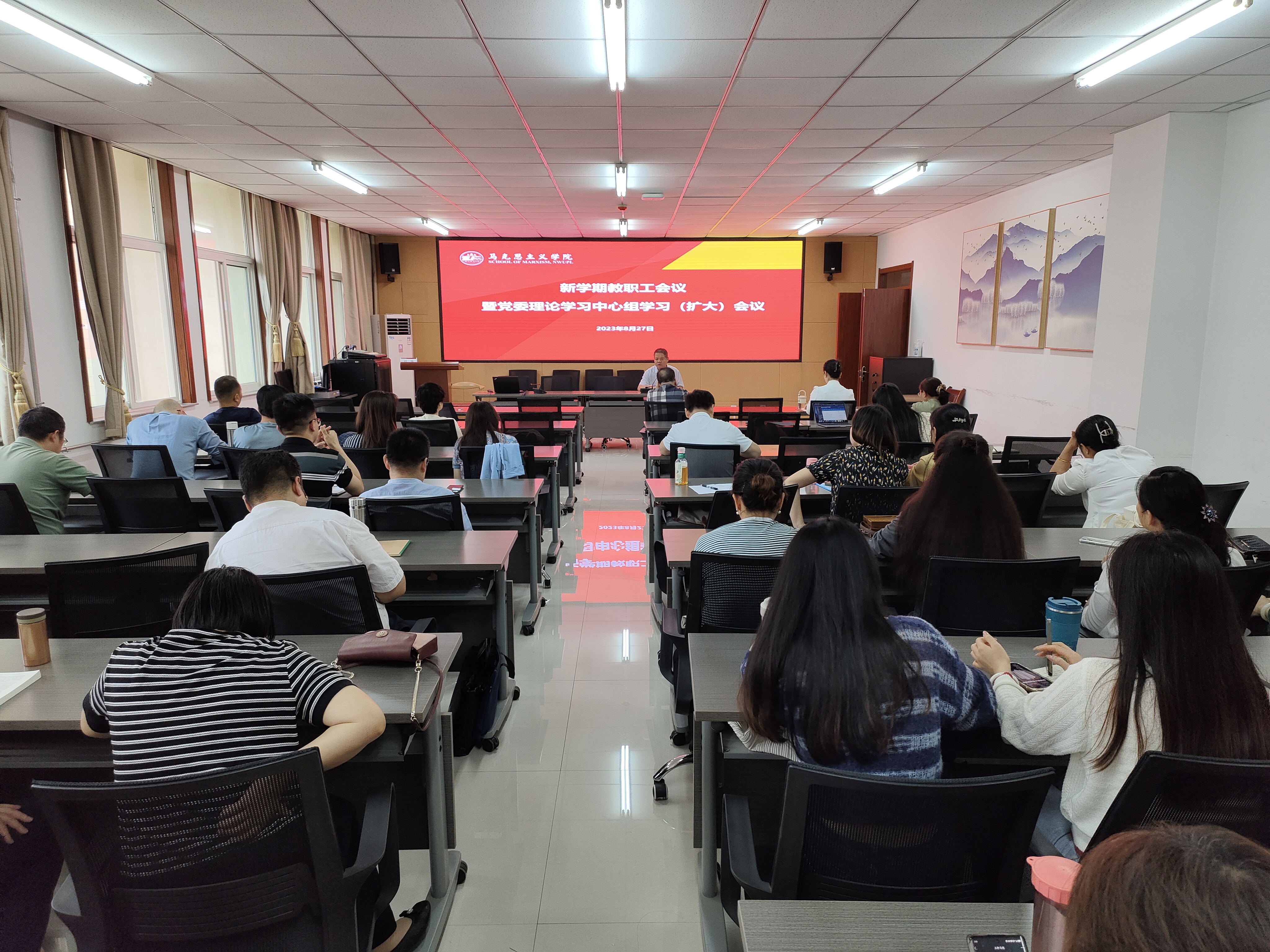 在会议室召开新学期全院教职工工作会议,总结上半年工作完成情况,安排部署本学期重点工作。会议由党委书记刘驰主持。