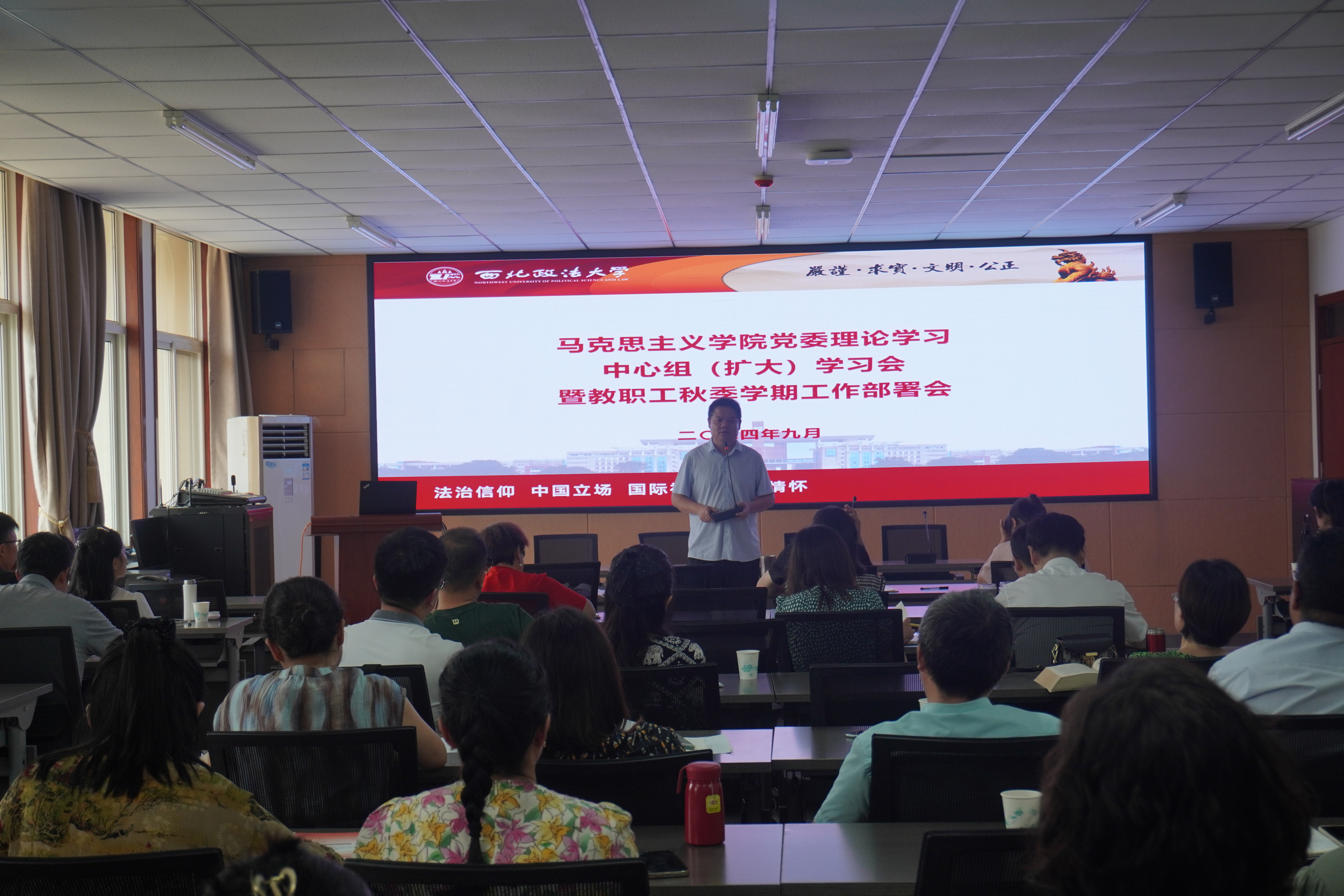 8月25日下午,足球直播88 在会议室召开党委理论学习中心组(扩大)学习会暨教职工秋季学期工作部署会,研讨学习党的二十届三中全会精神和全省学校思政课建设座谈会精神,总结上半年工作完成情况,全面部署新学期重点工作。足球直播88 全体教职工参加本次会议,会议由足球直播88 院长魏奇主持。