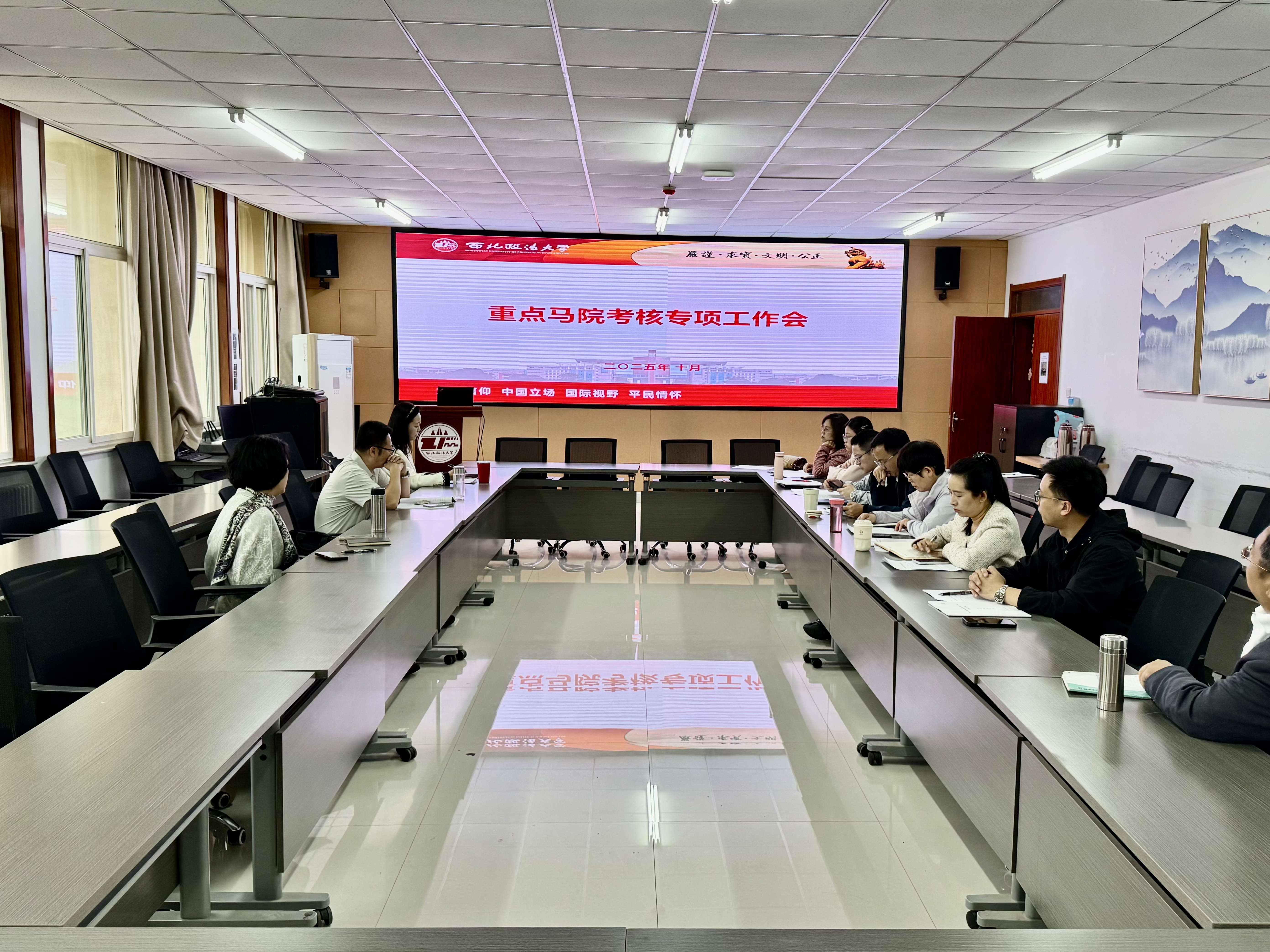10月9日上午,足球直播88 于诚意楼五楼会议室召开省重点马院建设专项工作会。足球直播88 党委书记刘驰及工作组全体成员、教学督导、各教研室主任等参加本次会议,会议由副院长鲁洋主持。