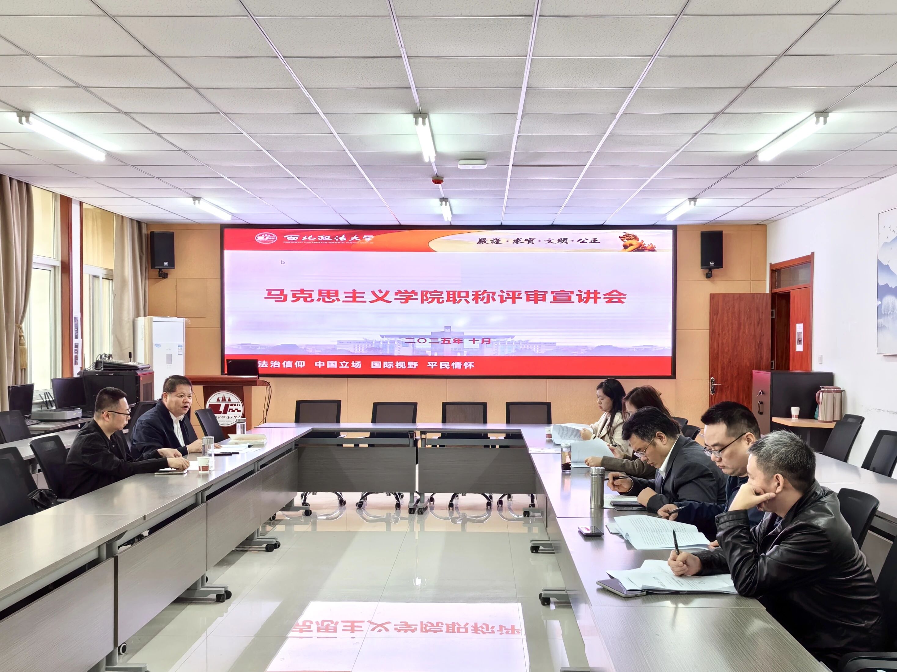 会上,赵琳详细传达了学校本年度职称评审工作会议精神,领学了《关于开展2025年度教师系列职称评审工作的通知》及《西北政法大学教师职称评审工作实施办法》等重要文件。参会老师围绕评审标准、申报流程与材料规范等问题进行了现场互动交流。