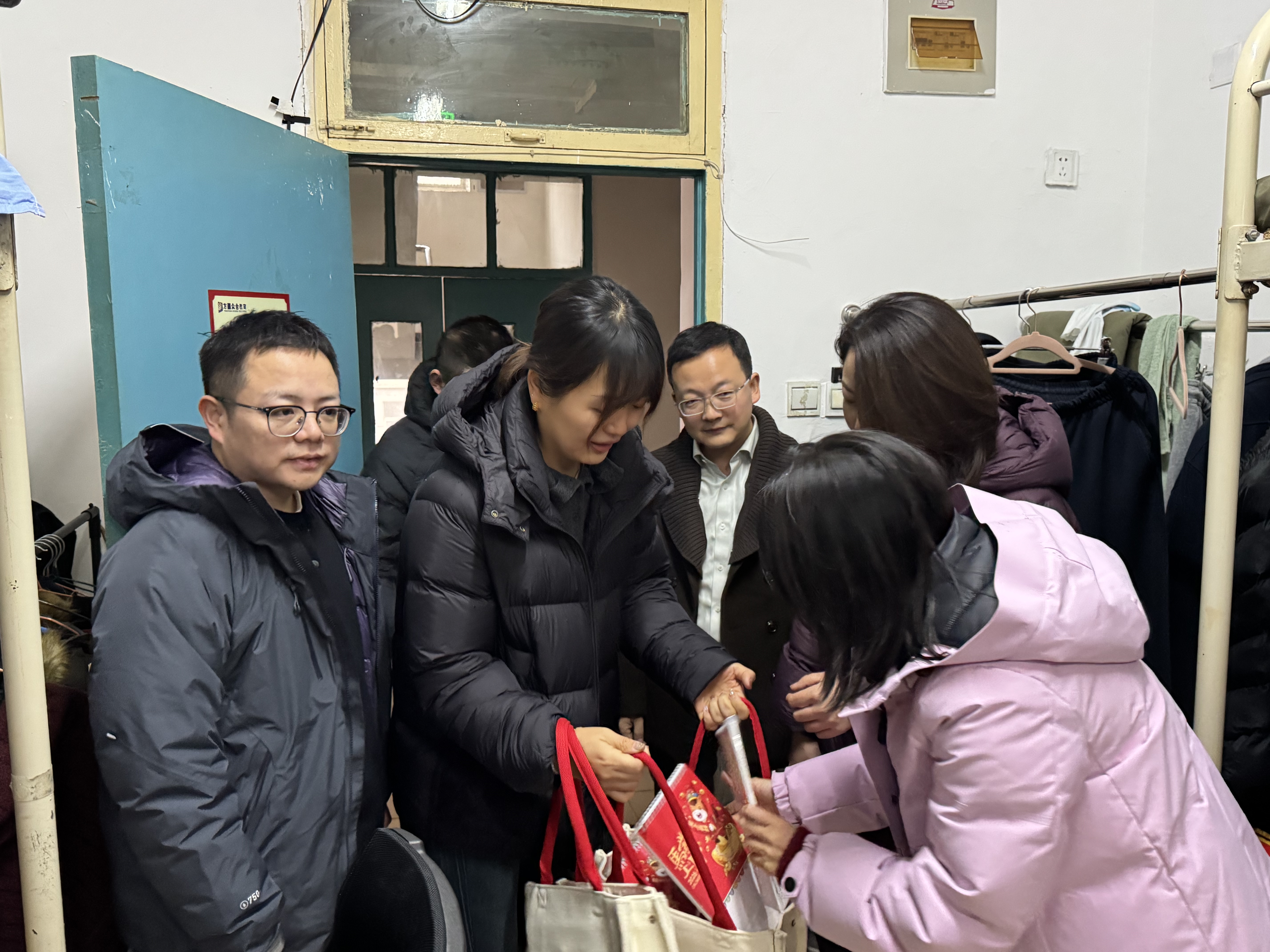 领导们向同学们致以新年祝福,送上新年礼物,并与大家亲切交谈,详细了解同学们的学习科研进展和日常生活情况,认真倾听大家在课程学习、科研安排及生活保障等方面的意见建议。其间,恰逢两位同学生日,老师们为其送上了生日蛋糕和真挚祝福,在新年将至之际为同学们增添了一份温暖与惊喜,宿舍内洋溢着温馨而愉快的节日氛围。