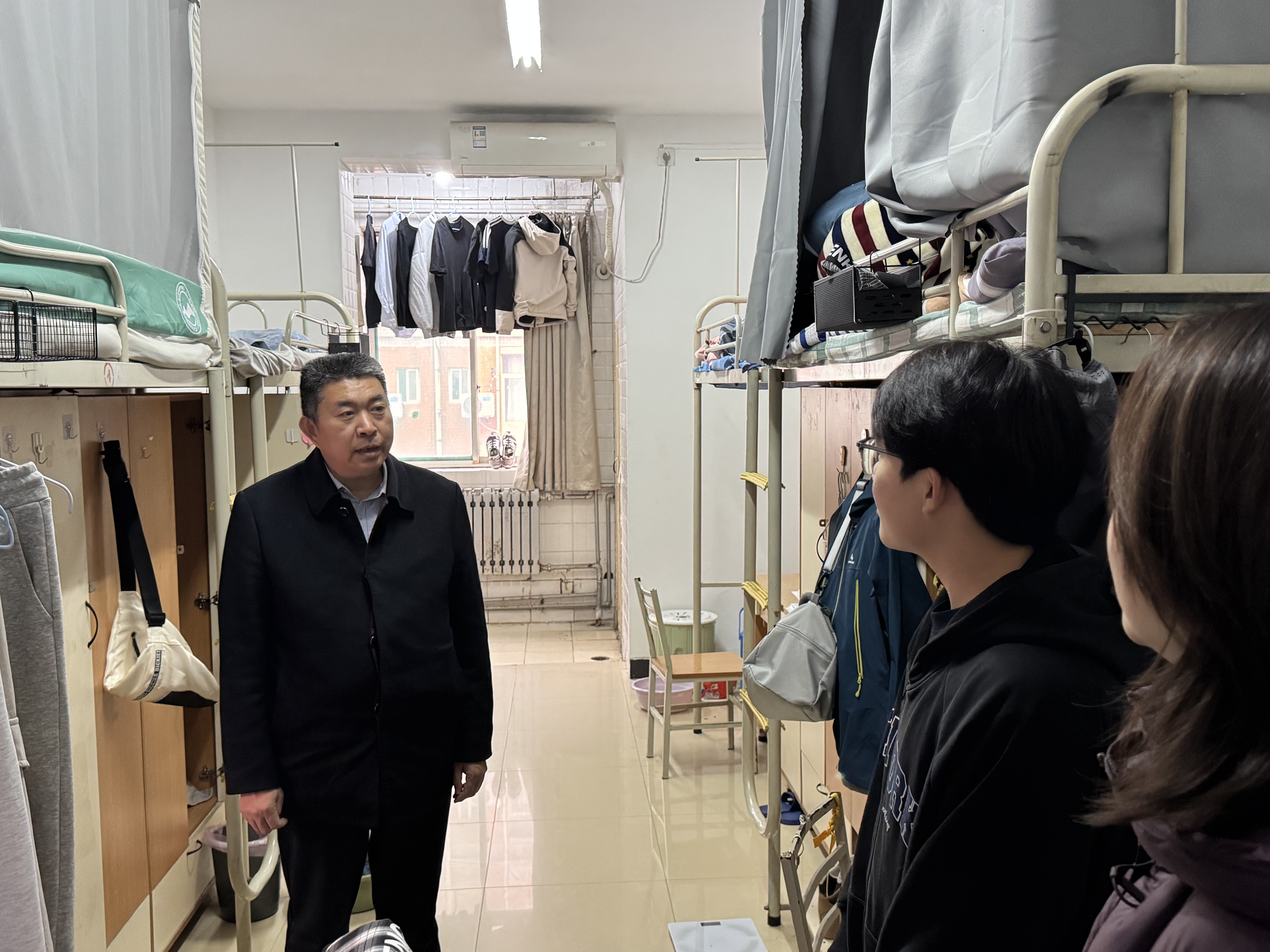 党委书记李政敏、常务副院长郭淼、副院长鞠娟、李伟弟、徐鹏以及辅导员刘栩源一行深入研究生宿舍,开展走访慰问。