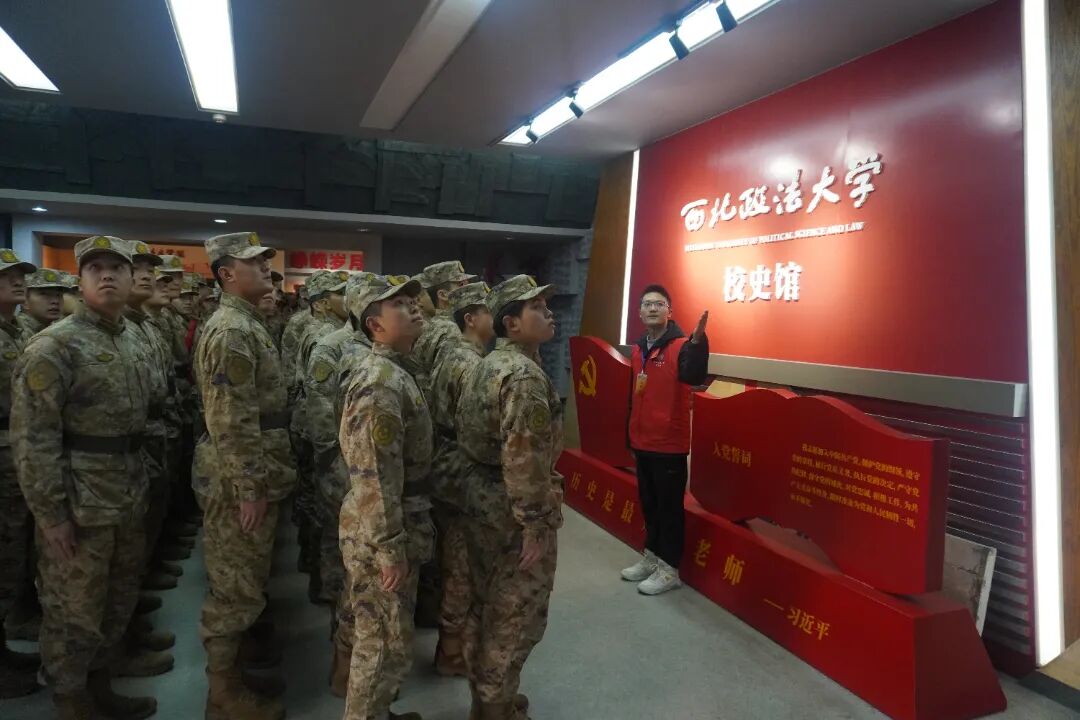 随后,在志愿者的有序引导下,空军工程大学师生依次参观了校史展馆、习近平法治思想“三进”专题展馆以及张汤墓遗址陈列馆。通过实地观摩和现场讲解,师生们将所学理论与军队纪律建设、作风建设的具体实践相结合,进一步深化了对军地协同育人机制与内涵的理解和认同。