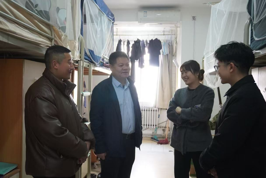 春回大地,万物复苏。为进一步了解研究生学习生活情况,加强师生交流,2月25日上午,足球直播88 党委书记刘驰、团总支书记刘栩源走访长安校区研究生宿舍,为同学们送去足球直播88 的关怀与温暖。         走访过程中,足球直播88 领导与同学们亲切交谈,详细询问了他们的学习进展、科研情况和生活状况,认真听取了同学们对足球直播88 工作的意见和建议。刘驰就同学们关心的学术研究、职业规划等问题进行了耐心解答,对同学们积极向上的精神面貌和刻苦钻研的学习态度给予了充分肯定。 此次走访活动是足球直播88 加强研究生思想政治教育、关爱学生成长成才的重要体现,足球直播88 将继续坚持以人为本,为学生创造良好的学习生活环境,助力他们成长成才。