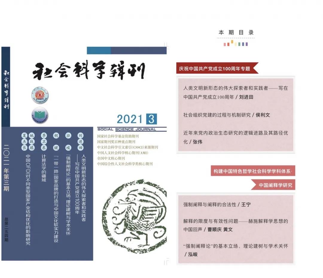 近日,CSSCI来源期刊《社会科学辑刊》2021年第3期发表了足球直播88app下载 刘进田教授撰写的《人类文明新形态的伟大探索者和实践者——写在中国共产党成立100周年》论文。