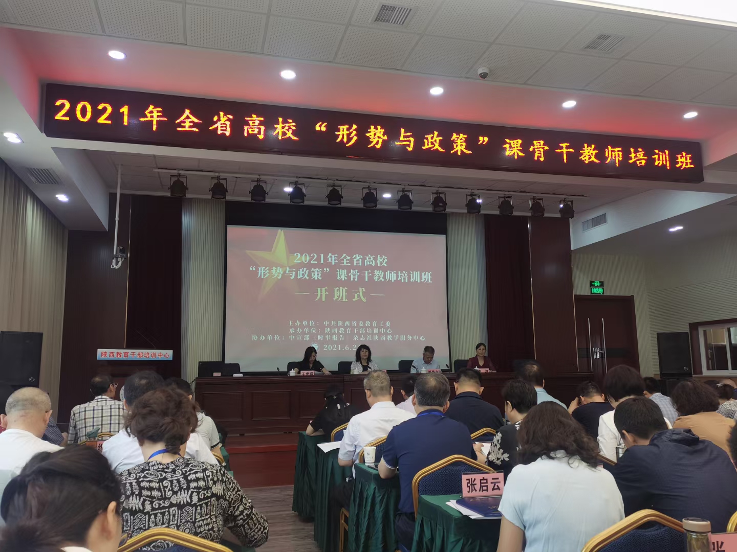 6月24日,培训班举行了开班仪式, 中宣部《时事报告》杂志社副总编李玮致辞,省委教育工委宣传部梅争利部长做开班讲话,宣传部副部长王世娟主持开班仪式。