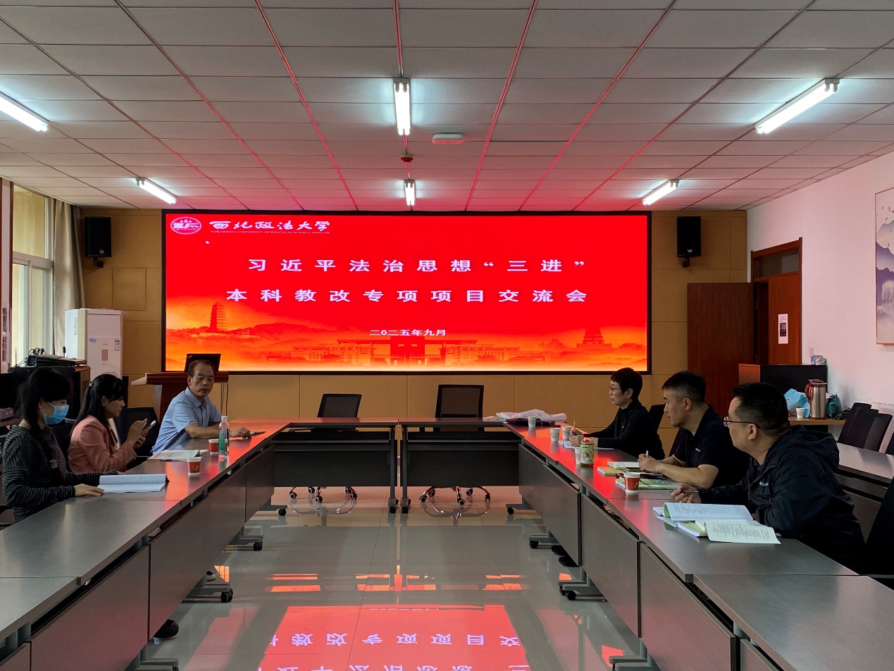 会议室举行校级本科教改项目《习近平法治思想贯穿融入“思想道德与法治”课程教学研究》(XJYBZ202439)交流会。项目主持人张顺军老师就项目的立项目的、研究的阶段成果以及研究的主要问题等方面进行了汇报。该项目的主要参与老师从课题研究的重点与难点、创新点与研究的不足等方面进行了深刻的总结。参会的其他教师结合本科教改项目与提升课程教学、解决理论问题与现实问题之间的关系等方面充分发表了意见,并对进一步完善项目的研究体系、落实项目的研究成果提出了卓有成效的建议。
