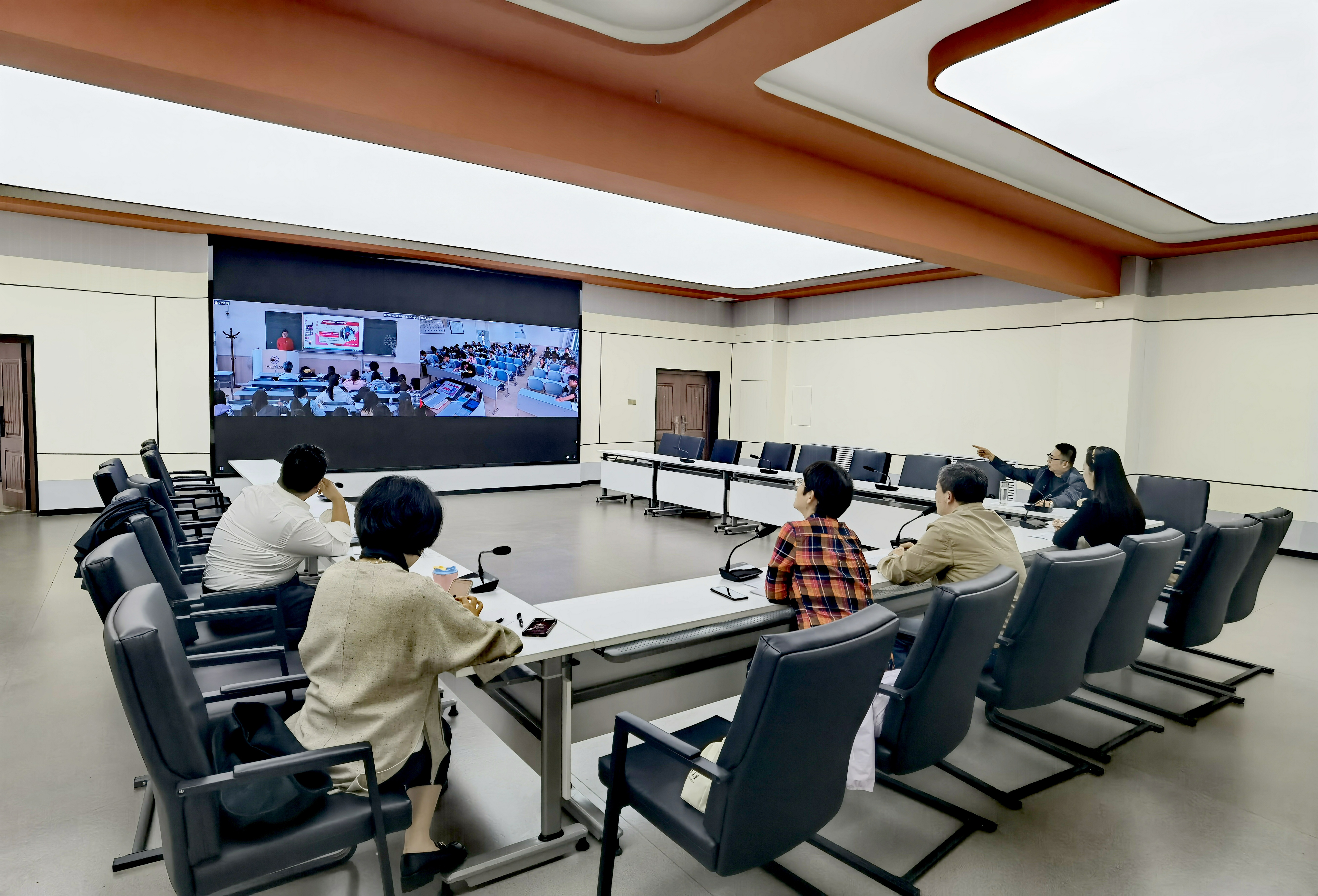 于天平楼A座可视化中心开展“四课行动”暨教学研讨会。校教学督导张宏斌、汪小宁,教研室主任赵琳、王轩、李贵,教务秘书宋伟参加了本次会议,会议由副院长鲁洋主持。
